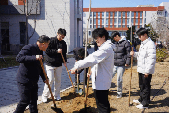 活动现场,大家精神饱满、热情高涨,自发三两成群、分工协作,扶苗、填土、压实、浇水,每一个环节认真细致、有条不紊。铁锹挥舞,新土覆根;水桶穿梭,清水润苗。师生们齐心协力、干劲十足,将一棵棵充满生机的树苗栽入校园沃土,为春日校园增添蓬勃生机。